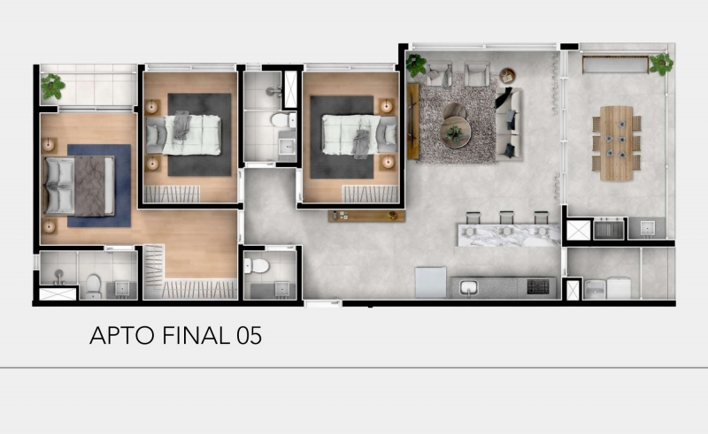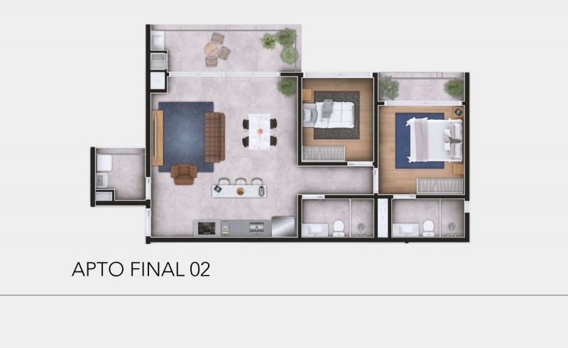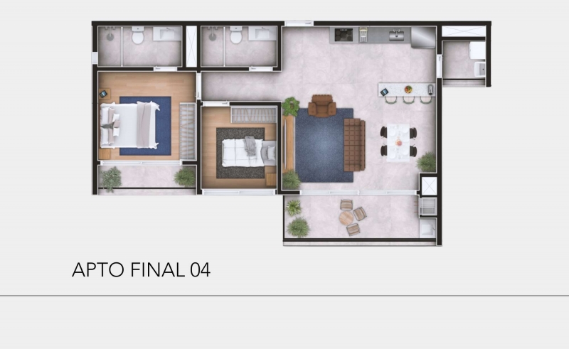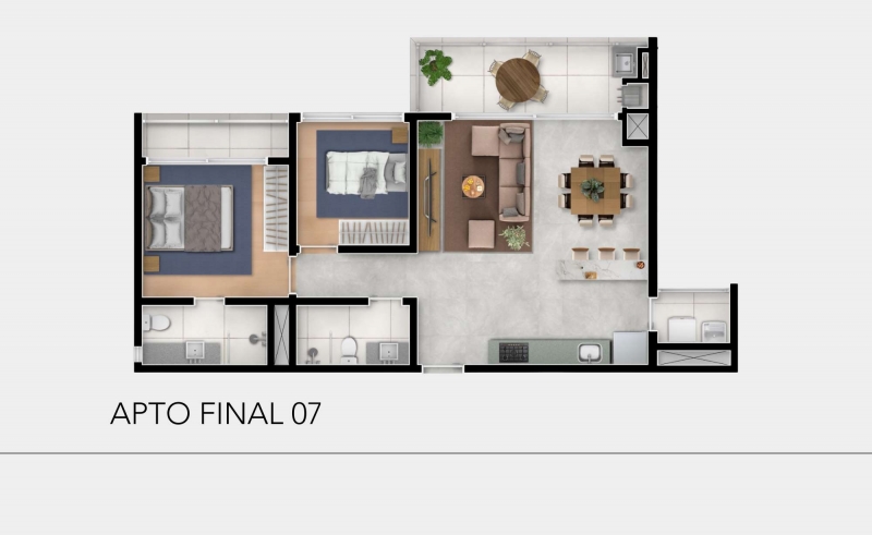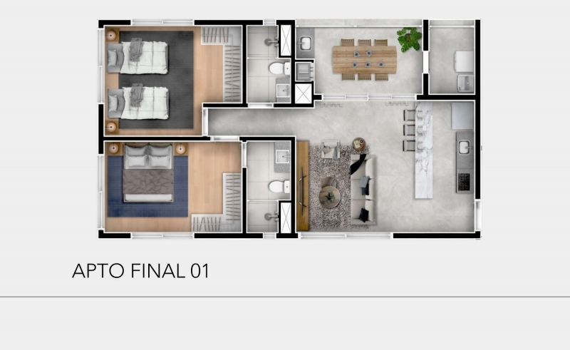 Tipo 85m² com 2 dormitórios sendo 1 suíte e 1 vaga.