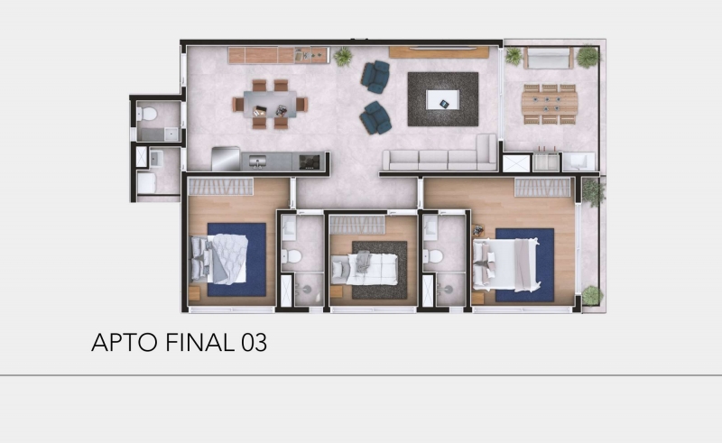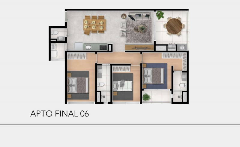 Tipo 110m² com 3 dormitórios sendo 1 suíte, e 1 ou 2 vagas.